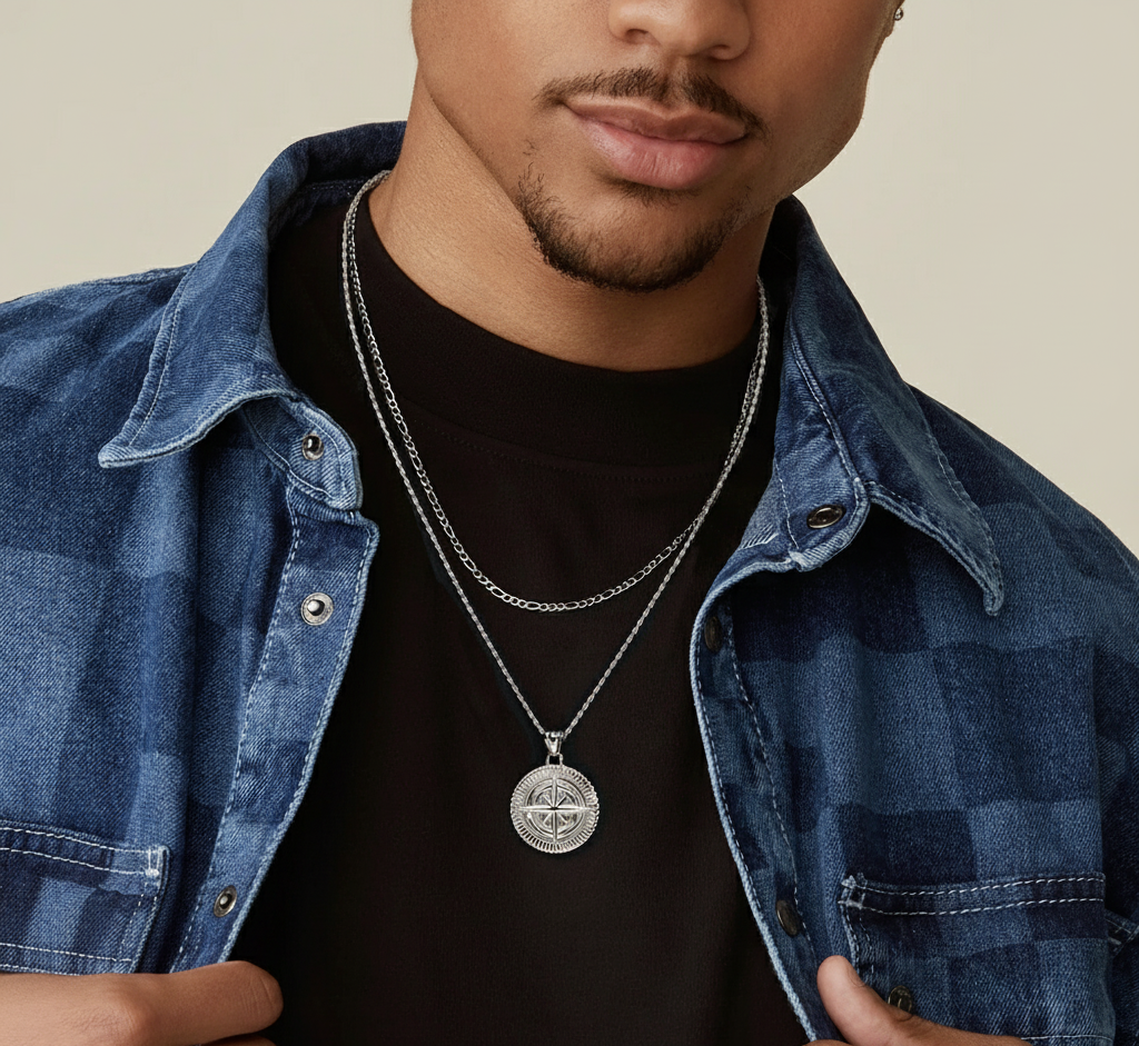 Collar Silver Compass Plata 925